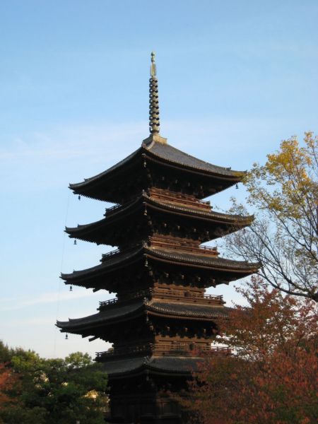 Kiến trúc chính chùa Đông Tự gồm có Bảo Tháp, Kim Đường, Giảng Đường, Đại Sư Đường. Bảo Tháp kiến trúc cổ xưa nhất của Đông Tự cao 56.4 m được Không Hải Đại Sư xây dựng năm 826, trãi qua 50 năm mới hoàn thành và sau đó bị hoả hoạn vào năm 1644 được Tướng Quân Đức Xuyên Gia Quang trùng kiến, là Bảo tháp làm bằng gỗ lớn và cao nhất ở Nhật Bản còn lại cho đến ngày nay.