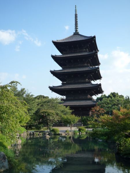 Đông Tự được Hằng Vũ Thiên Hoàng xây dựng vào năm thứ 13 niên hiệu Diên Lịch (794) khi dời kinh đô từ Trường Cang về Bình An, vì để chấn giữ kinh đô nên ngoài cổng chính của La Thành phía đông thành xây Đông Tự (chùa hướng Đông), phía tây xây Tây Tự ( chùa hướng Tây) cổng La Thành do mưa bão nên sụp đổ, chùa Tây Tự vào cuối thời kỳ Bình An bị huỷ hoại do hoả hoạn, còn chùa Đông Tự được bảo tồn nguyên vẹn cho đến ngày nay và vì vậy chùa Đông Tự được coi là chùa trấn giữ Kinh đô Bình An.