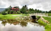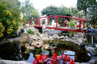 Vườn cây, hồ nước, cầu bộ… tạo nên phong cảnh rất Á Đông cho ngôi chùa.