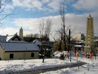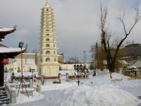 Gần như toàn bộ chùa bị bao phủ bởi tuyết trắng trong mùa đông