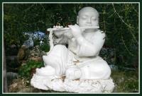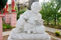 Sân trung tâm với rất nhiều tượng thạch cao và phía xa là Chính điện chùa