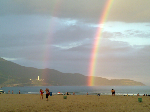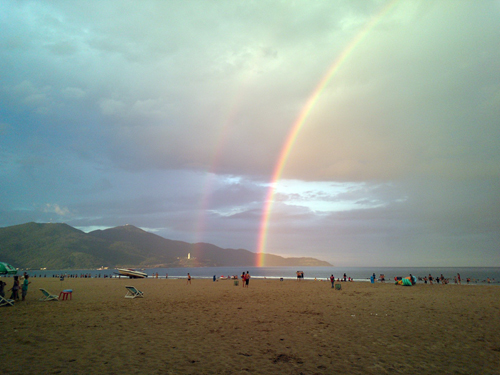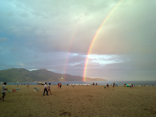 nhiều người đi biển trầm trồ: "Phải chăng cầu vồng kép đang nối hai ngôi