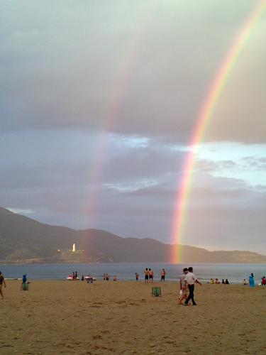 tôi thấy xuất hiện cầu vồng kép, mà lại xuất hiện ngay phía trước tượng